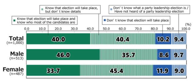 在日本两大政党领导人选举之前,日本财团(The Nippon Foundation)于9月20日至21日进行了第65期“18岁青年意识调查”,以了解年轻人对政治的兴趣变化、下届大选的投票意向以及对未来政治和新首相的期待。
